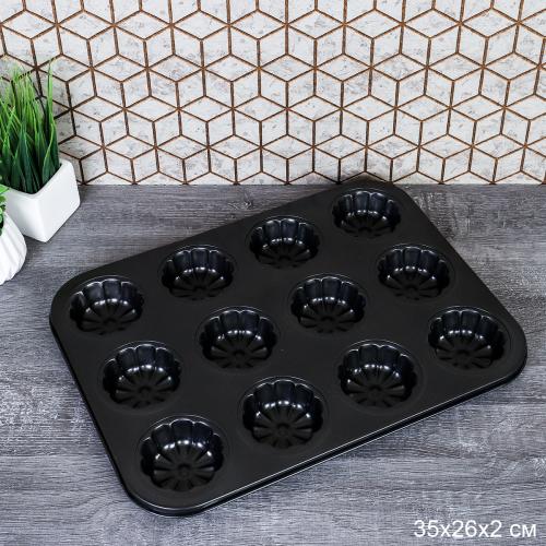 Форма для выпечки кексов и капкейков 12 ячеек 35х26 см / d-6,5;h-2,5 см / RSD-65 /уп 60/