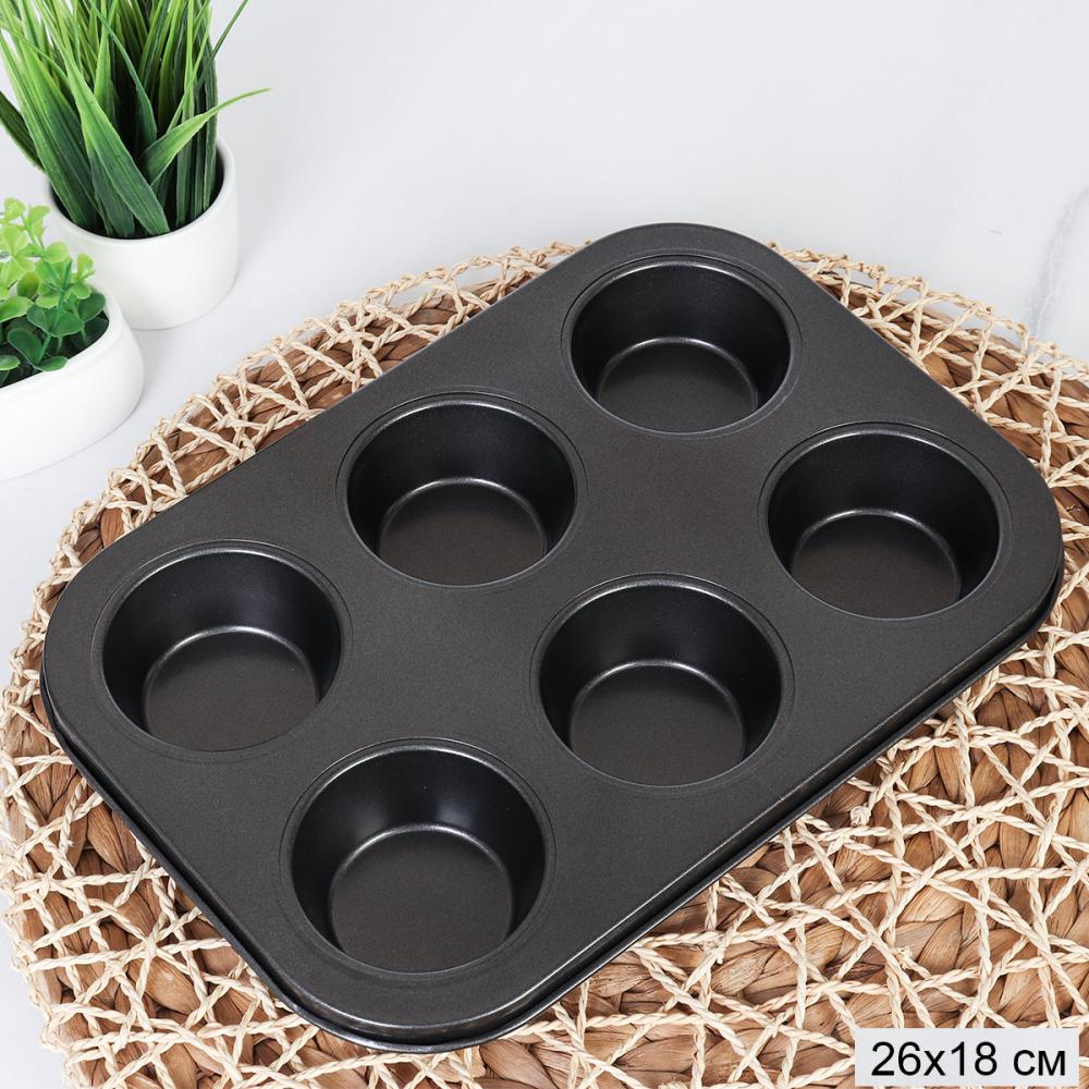 Форма для выпечки кексов и капкейков 6 ячеек 26х18 см / d-6; h-3 / RSD-10 /уп 100/ 0,182/ антипригарное/ 688597