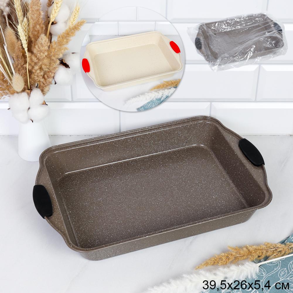 Противень 39,5х26х5,4 см Мрамор с силиконовыми ручками/ RSD-933 /уп 30/ 0.52/