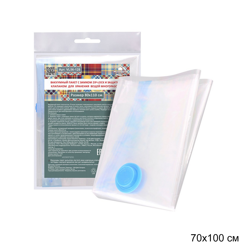 Пакет вакуумный Zip-lock многоразовый 70х100 см / VL56-127 /уп 12/144/