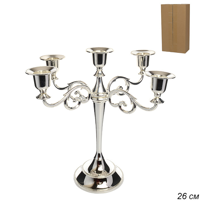 Подсвечник на 5 свечей 26 см серебро / 10 /уп 30/