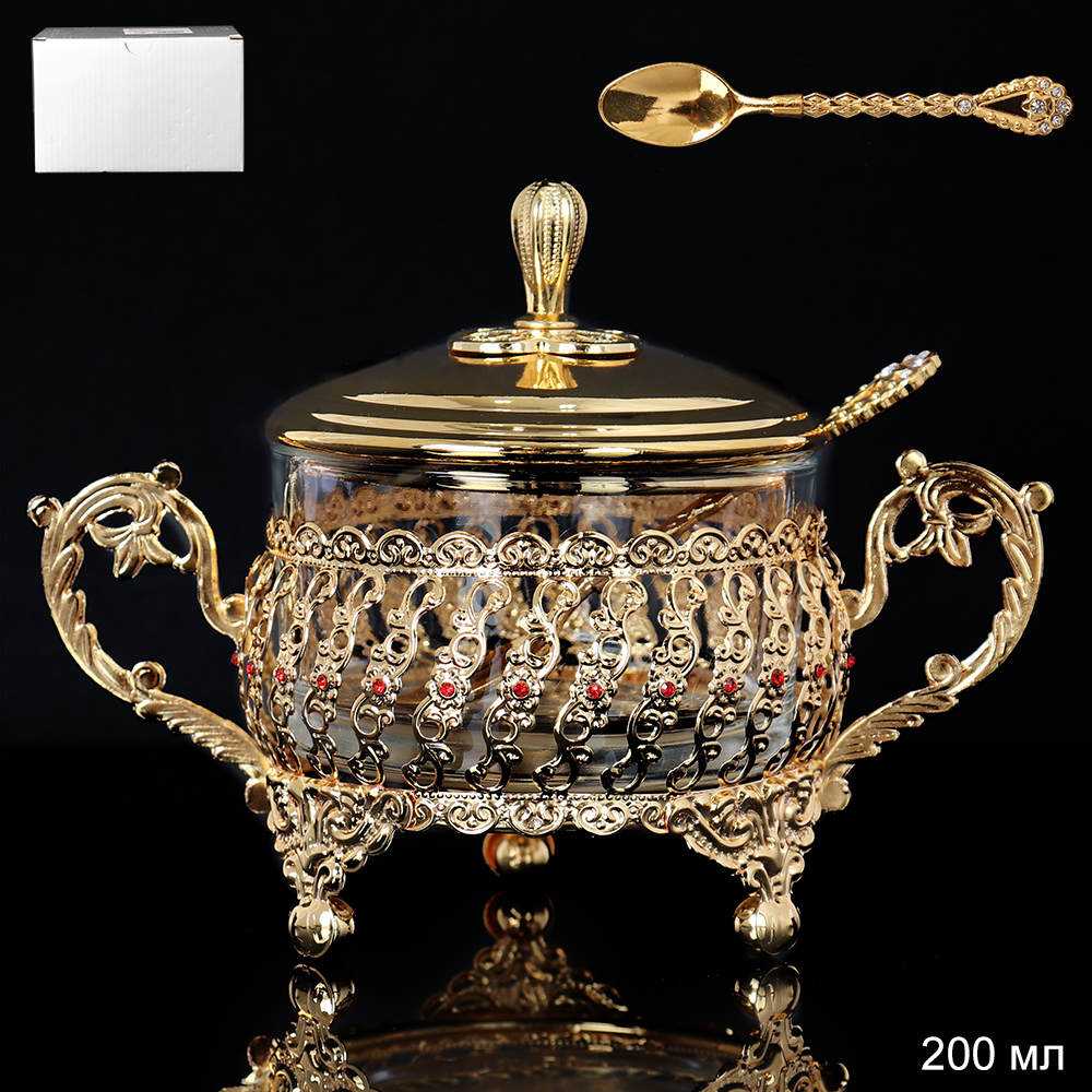 Сахарница 200 мл с ложкой / 210-1-золото /уп 48/