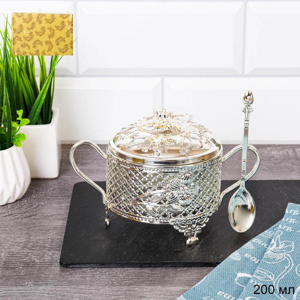Сахарница 200 мл с ложкой / 889-3-SILVER /уп 96/
