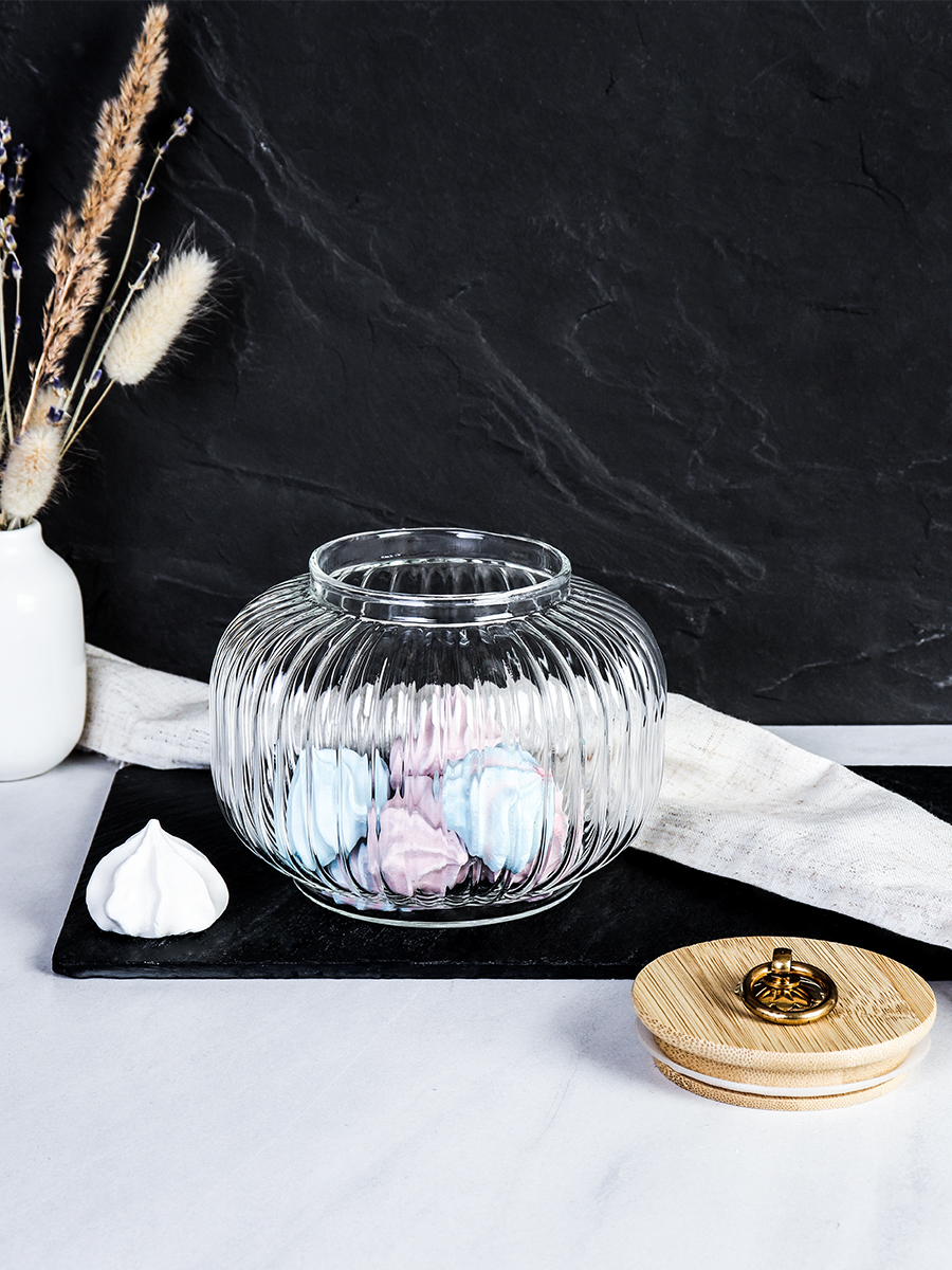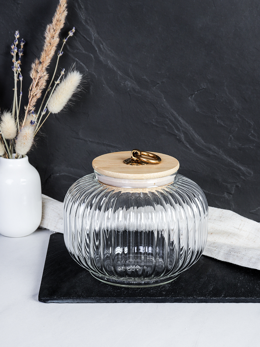 Банка для сыпучих бамбуковая крышка Бочонок рифленая 850 мл / 9544 /уп 60/