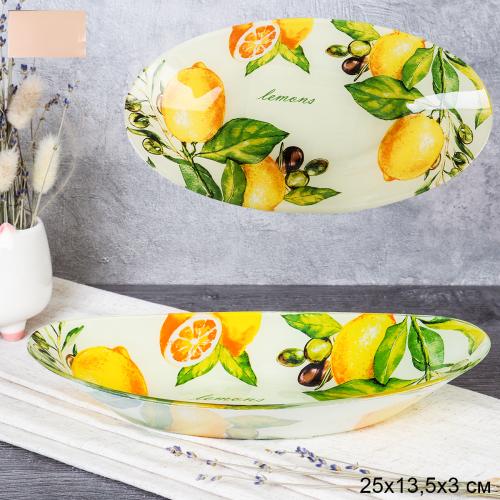 Блюдо овальное глубокое 25 см / S441210S FF157 GREY Лимоны /уп 6/36/ цветная коробка