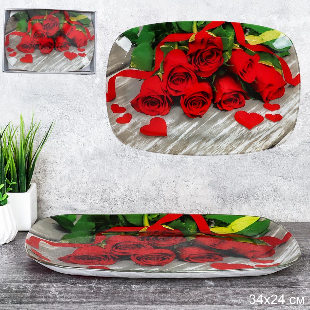Блюдо прямоугольное глубокое 34х24 см / S445014C - Y044 /уп 12/ Букет роз ДОП СКИДКА ОТ 1 шт 2%