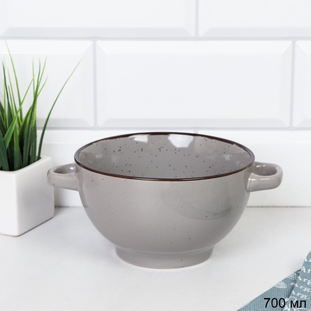 Супница с ручками 700 мл ШТУЧНО / 33579 /уп 6/ Серая в крапинку