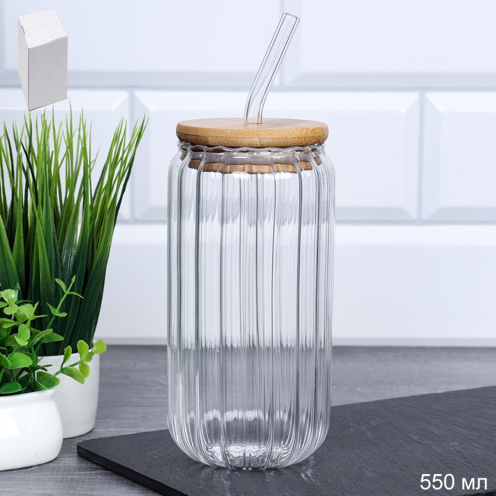 Стакан для смузи бамбуковая крышка 550 мл Банка для смузи бамбуковая крышка 550 мл