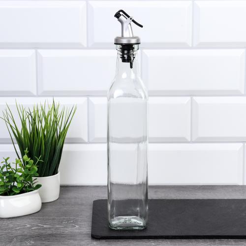 Бутылка стеклянная с носиком-дозатором. Дозатор позволяет наливать ровной, тонкой струйкой. Крышка плотно прилегает и не дает растекаться жидкости, а также не пропускает воздух, не впитывает запахи.