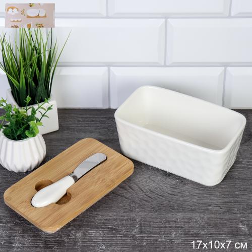 Масленка и нож 17х10 см / MN3918 /уп 36/ на деревянной подставке