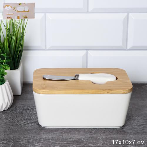 Масленка и нож 17х10 см / MN3919 /уп 36/ на деревянной подставке