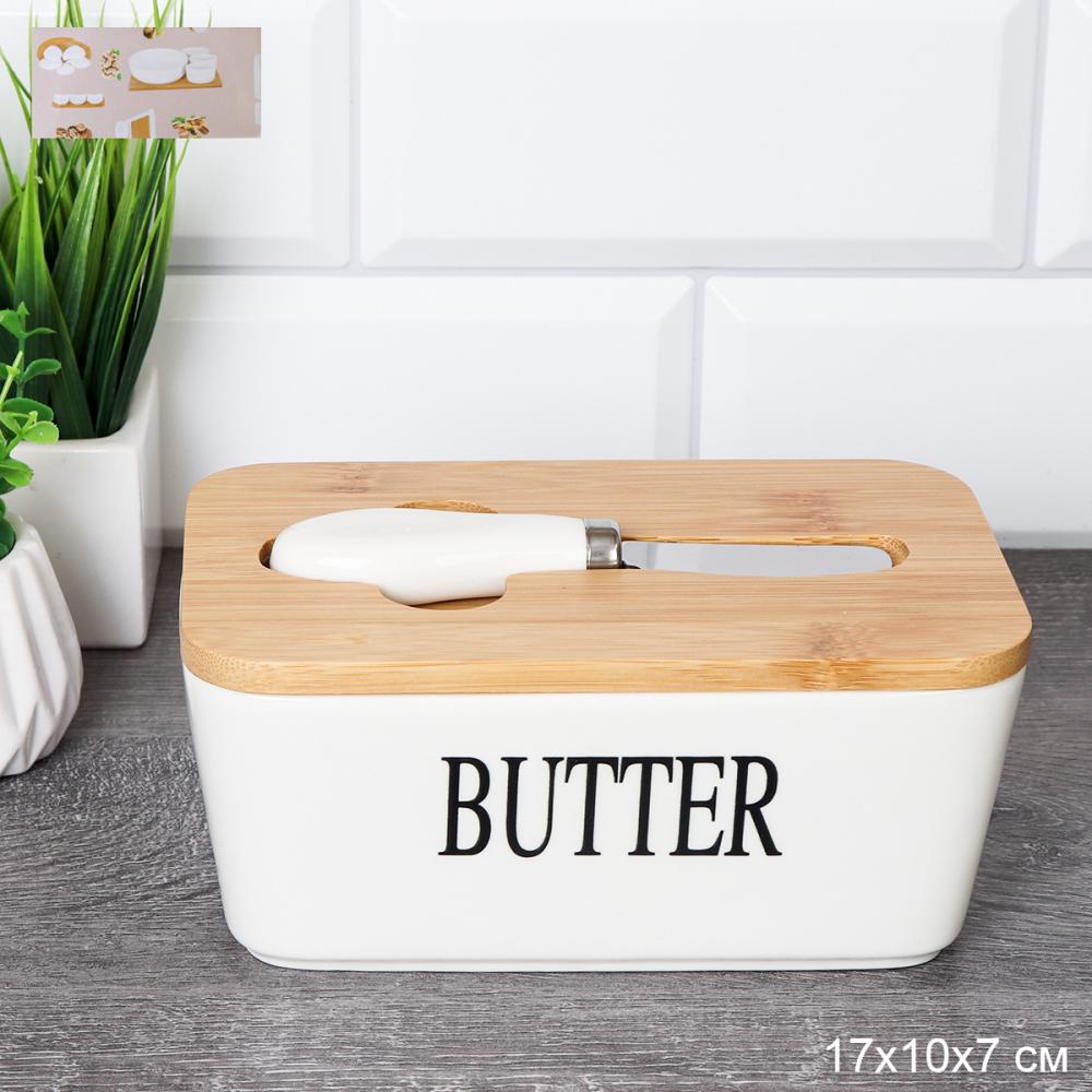 Масленка и нож 17х10 см / MN3920 /уп 36/ на деревянной подставке