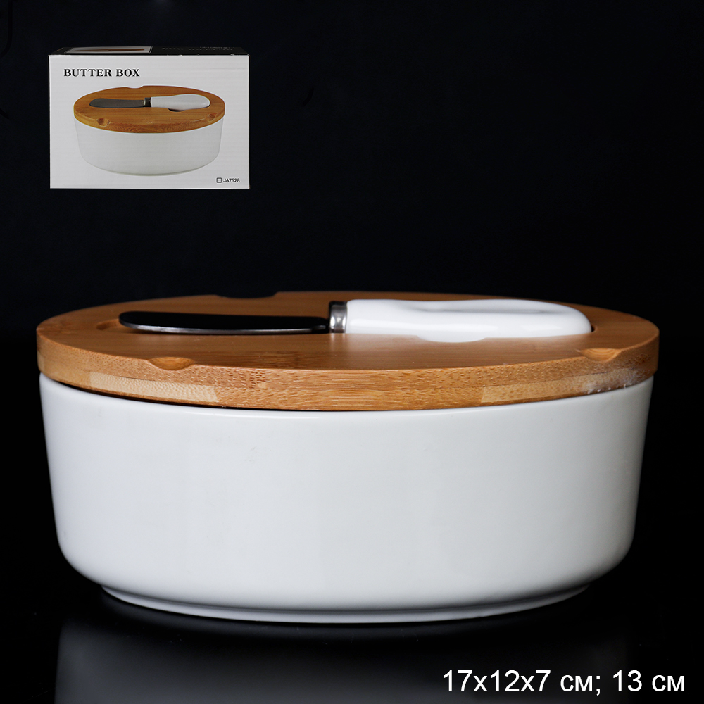 Масленка и нож 17х12 см АКЦИЯ / JA7528 /уп 24/ деревянная подставка для ножа