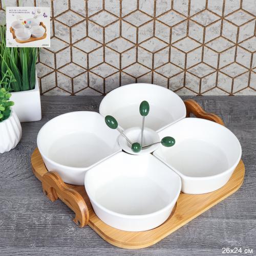 Менажница 4 предмета с 4 шпажками / JD6983 /уп 8/*Ц на деревянной подставке