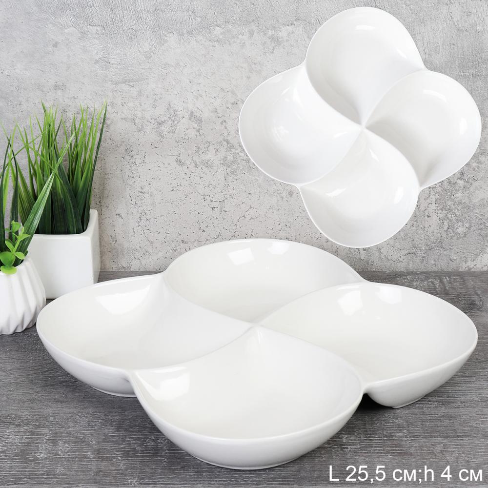 Менажница 4 секции 25,5 см, h- 4 см / DX0593-10 /уп 22/ белое