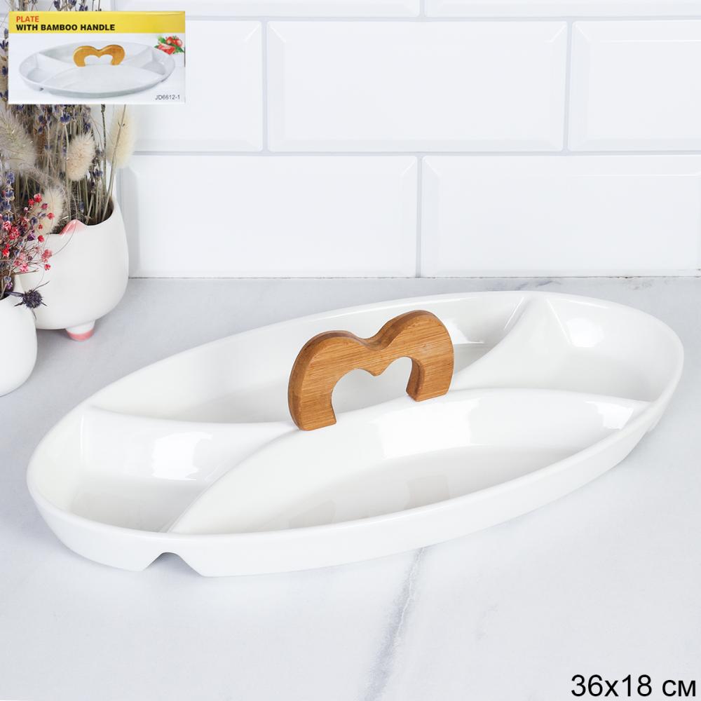 Менажница 4 секции / JD6612-1 /уп 20/ деревянная ручка