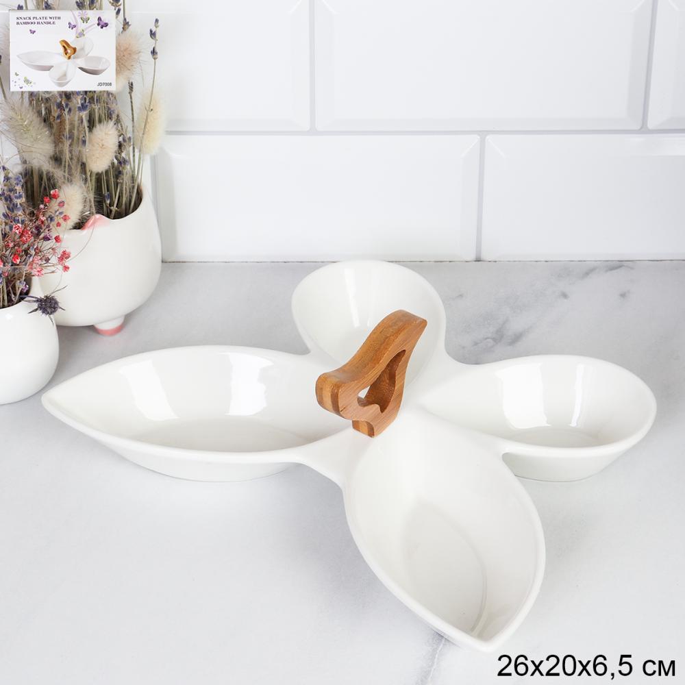 Менажница 4 секции / JD7008 /уп 20/ деревянная ручка