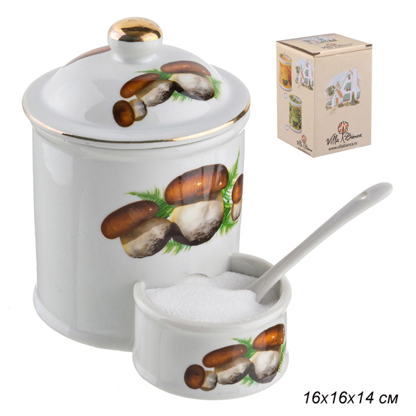 Банка для соли с ложкой 16х16х14 см Грибы / 178-875 /уп/