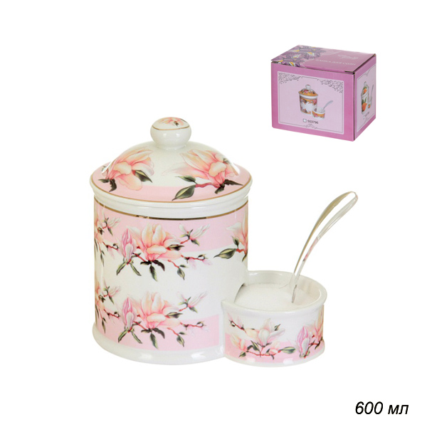 Банка для соли с ложкой 600 мл Орхидея на розовом / 503760 / /уп.18/