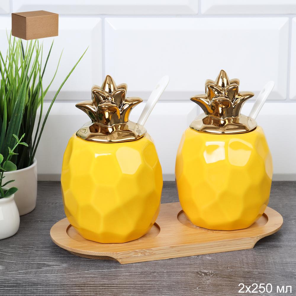 Набор для специй 2 предмета с ложкой 250 мл Ананас / CF434-1 /уп 36/ на подставке