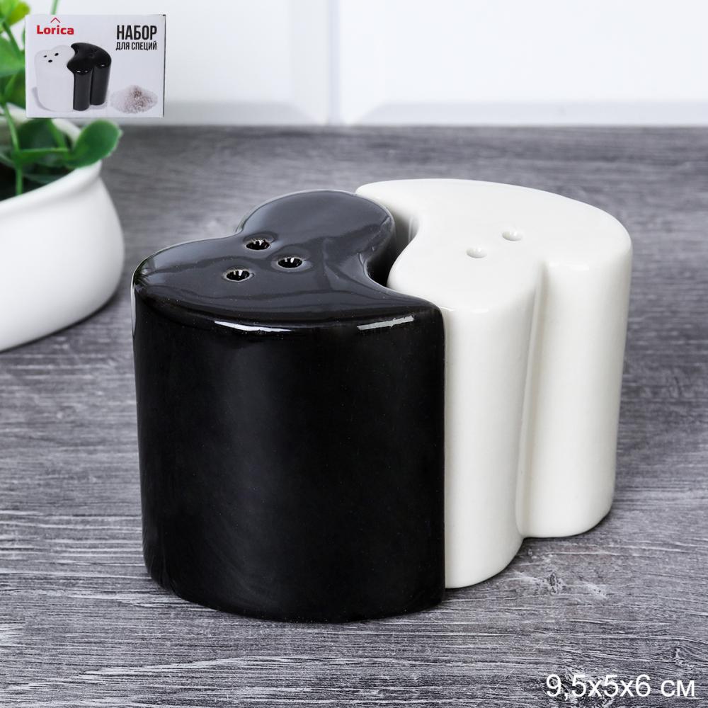 Набор для специй 2 предмета Сердца Инь Янь / 152 /уп 144/ черно-белые