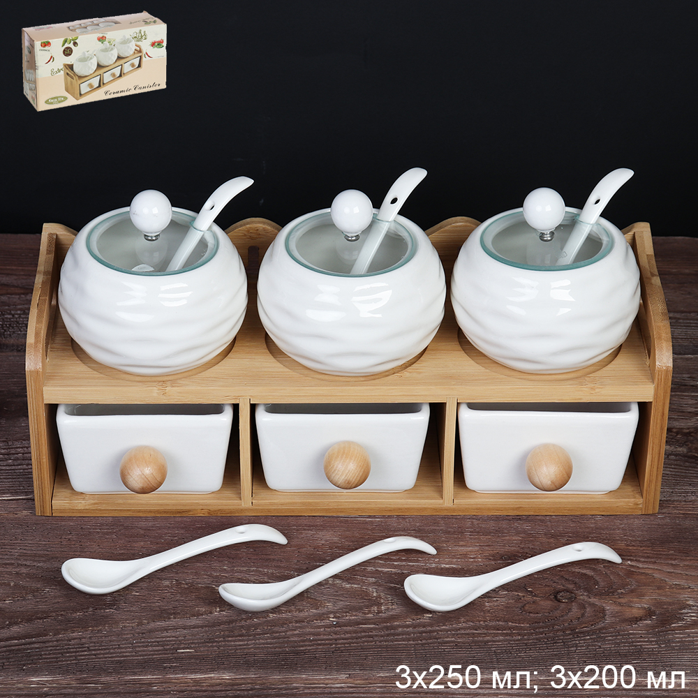 Набор для специй 6 предметов 250 мл 200 мл с ложками / CF149 /уп 15/ на подставке