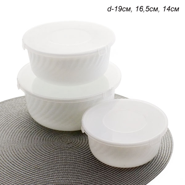Салатники с крышкой 3 предмета белые HDW3B /уп 12/ К