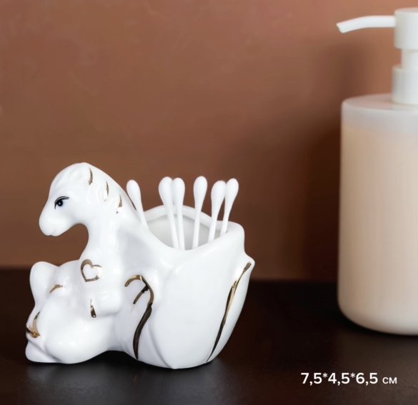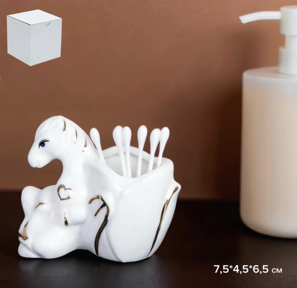 Подставка для ватных палочек Лошадь 8 см / B5448 /уп 144/ Символ года 2026 744510 костяной фарфор