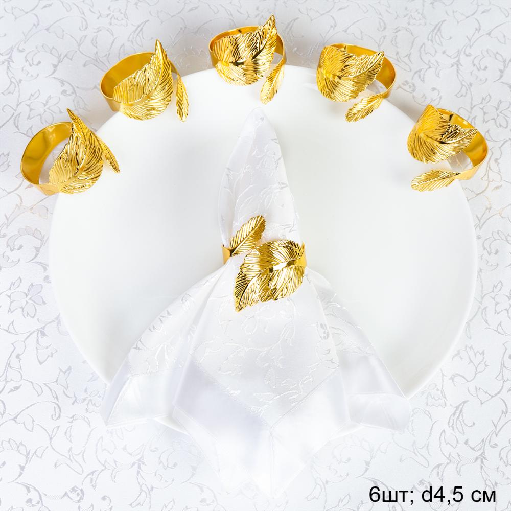 Кольца для салфеток 6 штук Лавр Золото / JG12 /уп 50/ 8 марта/ подарок для женщины