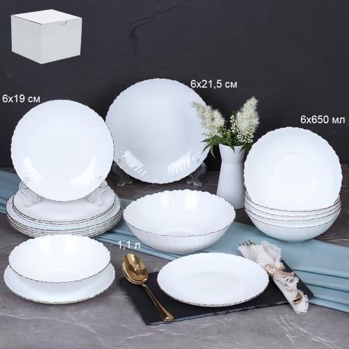 Столовый набор 19 предметов ЗОЛОТО Классика 19-758578(ЗОЛОТО) / уп 2/ белый короб