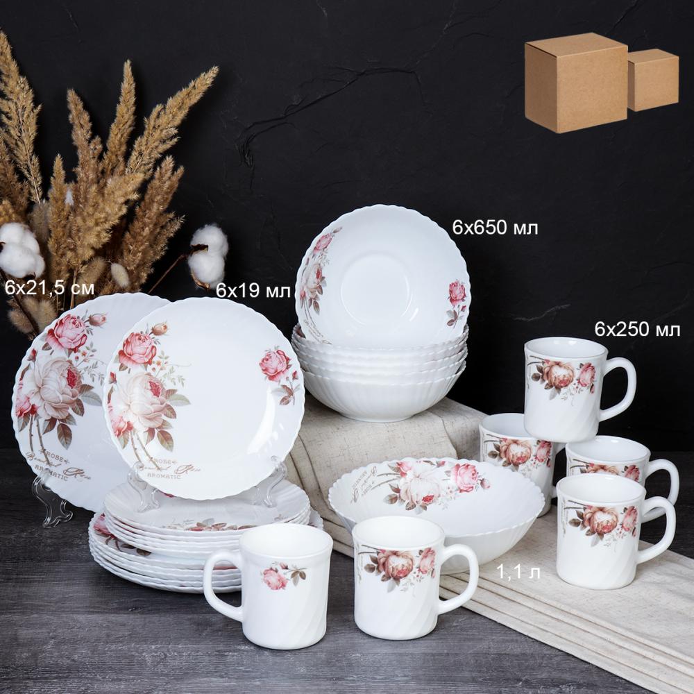 Столовый набор 25 предметов с кружками 270 мл / GRAY-19/758578 (6916) /уп 2/ серия Чайная роза