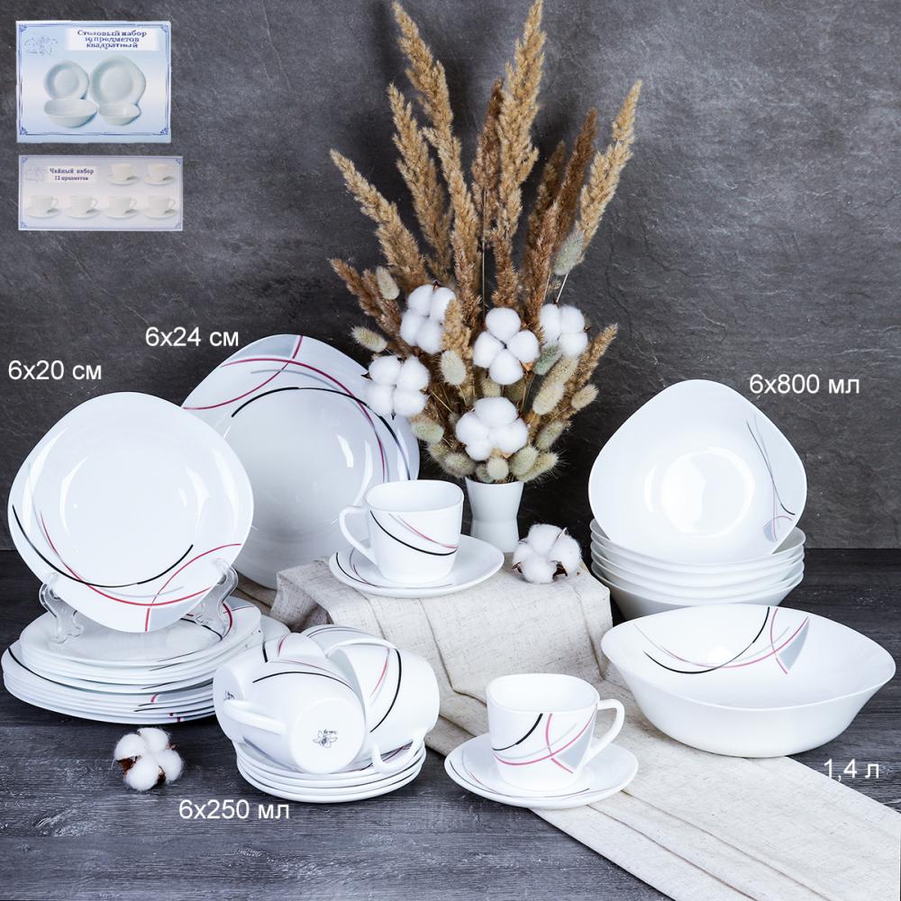 Столовый набор 31 предмет квадратный с чайным набором / 19/8957595/XN (7267) Полосы бордо