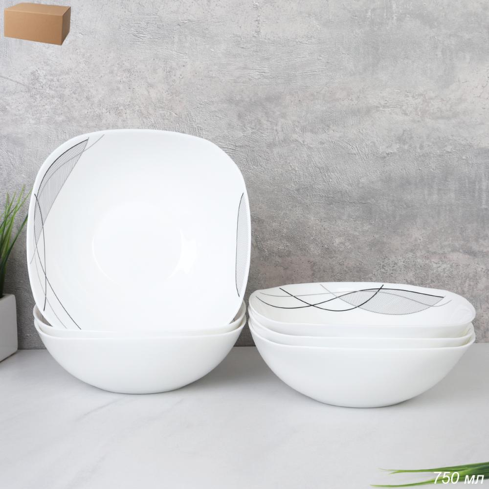 Набор суповых квадратных тарелок 6 штук 750 мл 190 мм / LKSW75 (2029) /уп 6/ Абстракция волны