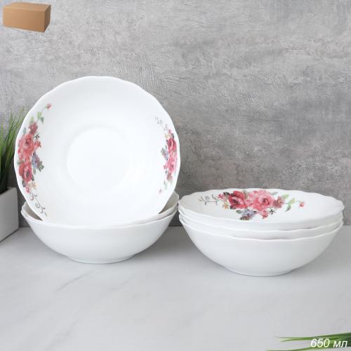 Набор суповых тарелок 6 штук 650 мл 175 мм / HW70 (2024) /уп 8/ Розовая композиция