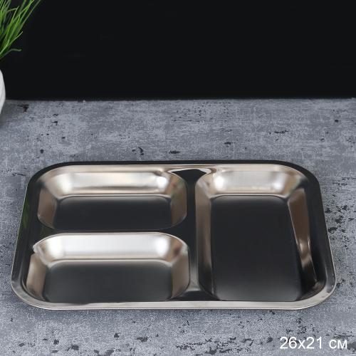 Тарелка менажница прямоугольная 25х21х2 см металл/ SR-327 /уп 240/0,17