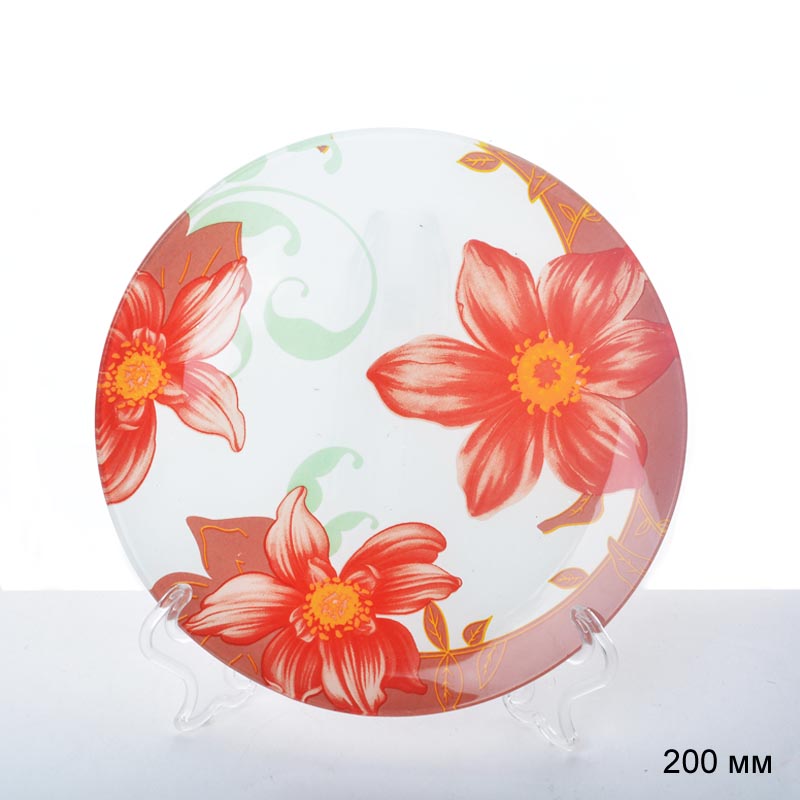 Тарелка обеденная 200 мм Красные цветы Акция