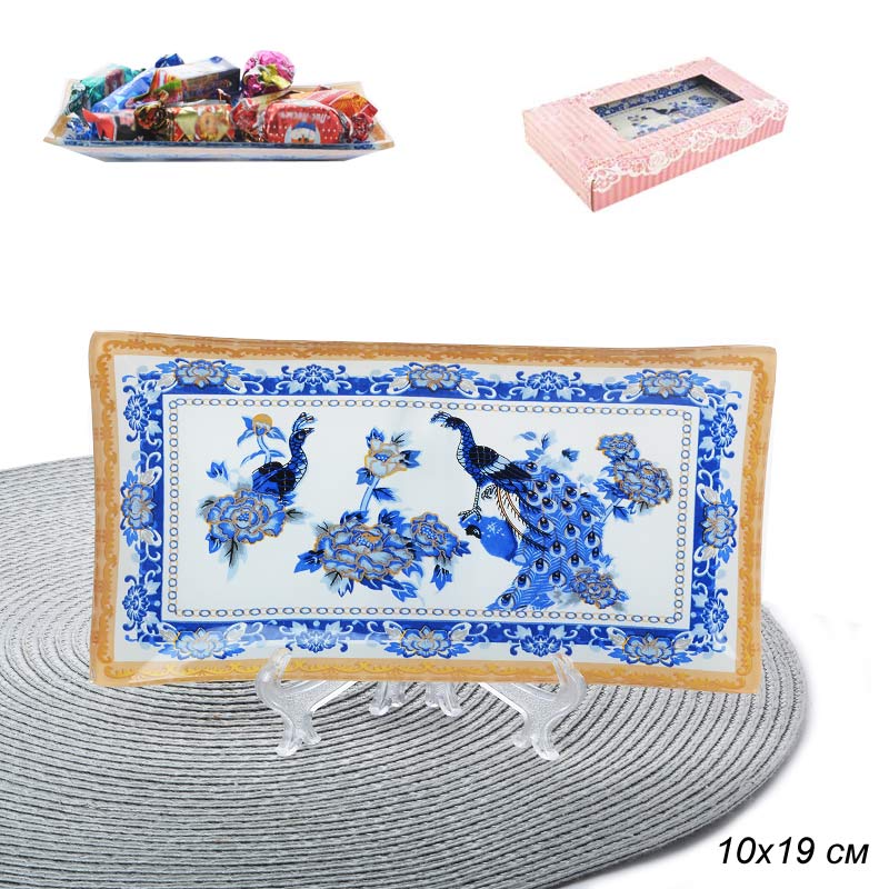 Тарелка с подставкой в подарочной упаковке Павлин синий S1910 A231/ АКЦИЯ /уп 60/