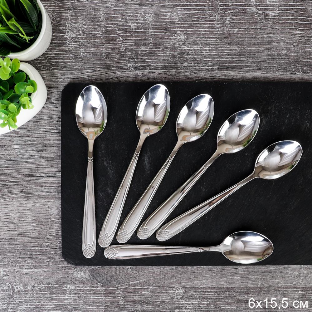 Ложка чайная 6 штук Серебро Капелло Глянец / MJXA4 /уп 100/ 15 см
