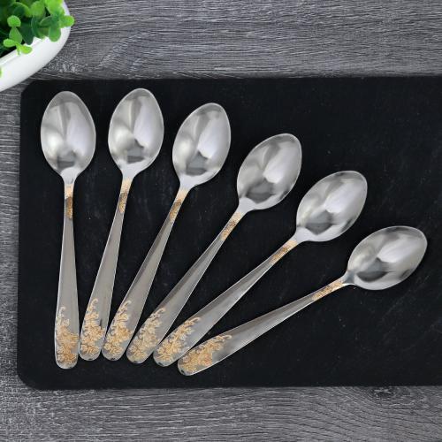 Ложка чайная 6 штук Золото Кантата Глянец / MJ3281-1/уп 100/ 15 см