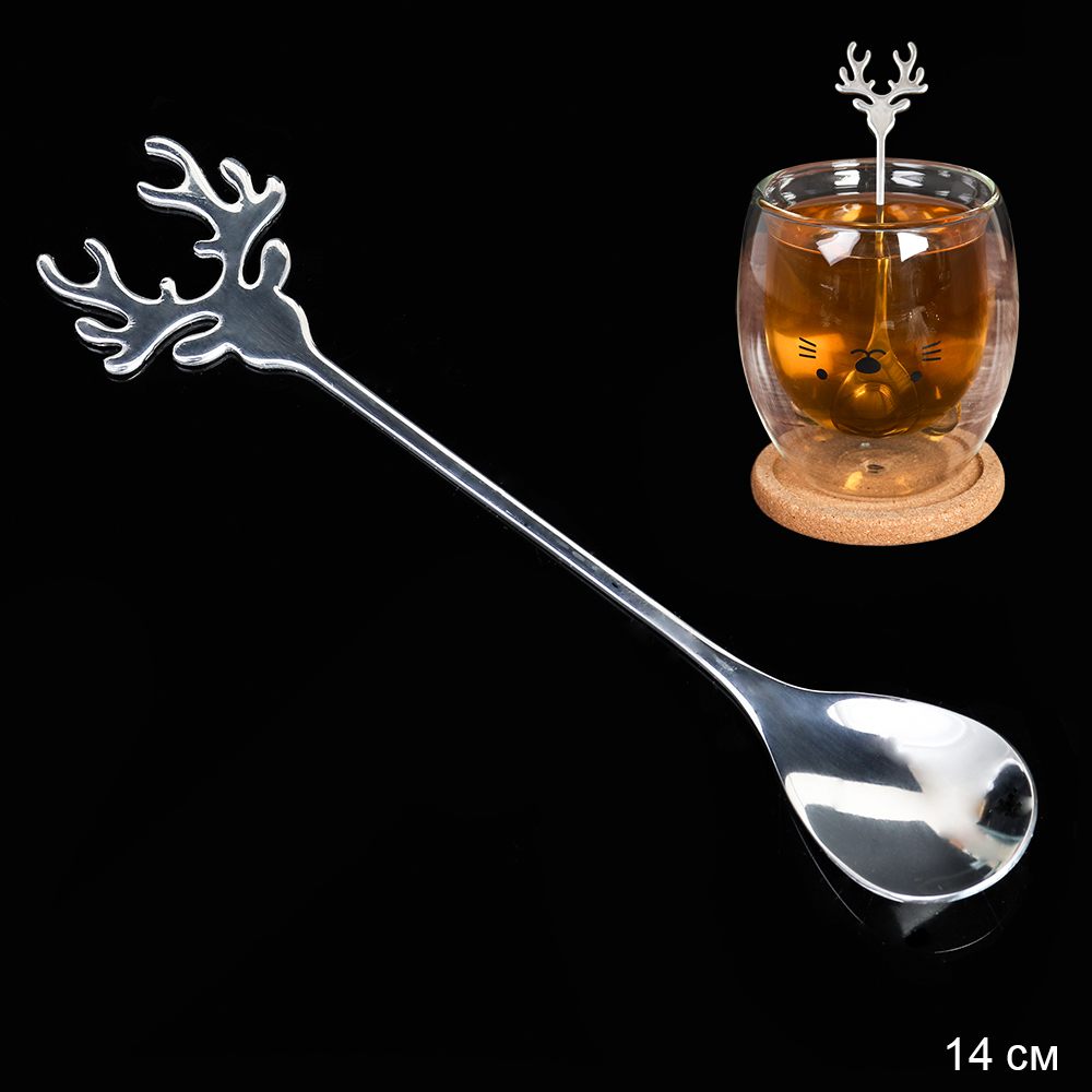 Ложка чайная серебро Олень / MJ012 -H-250 /уп 100/ новогодняя