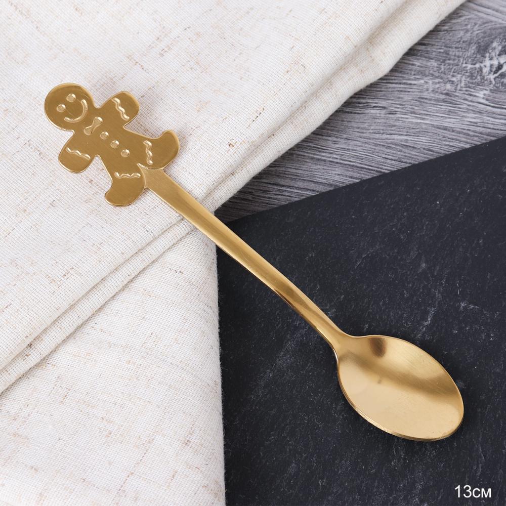 Ложка чайная золото Пряник / MJ027 /уп 400/Новогодняя
