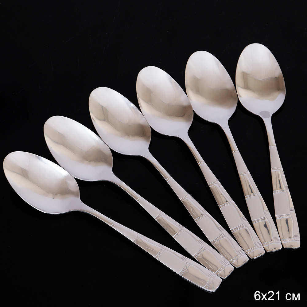 Ложка столовая 6 штук Серебро Бамбук / H-466 /уп 100/ 0,37