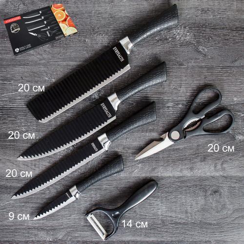 Набор кухонных ножей 6 предметов в магнитной коробке / WD-100 /уп 30/ножницы и овощечистка в комплекте
