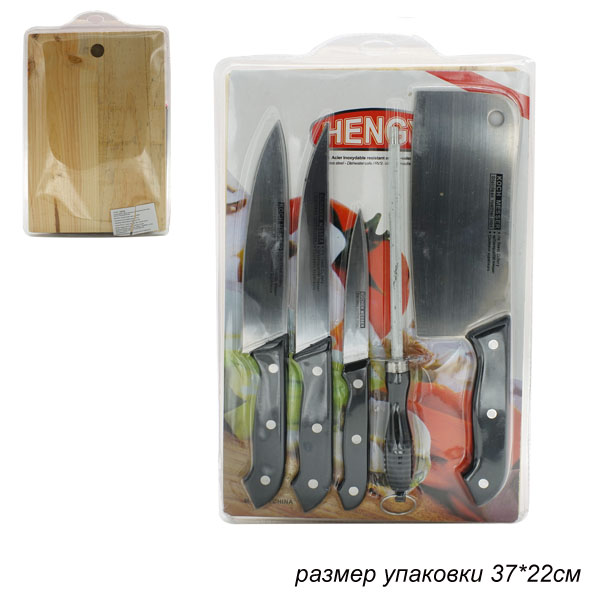 Ножи 5 предметов с ножеточкой и разделочной доской / 5511 /уп 40/