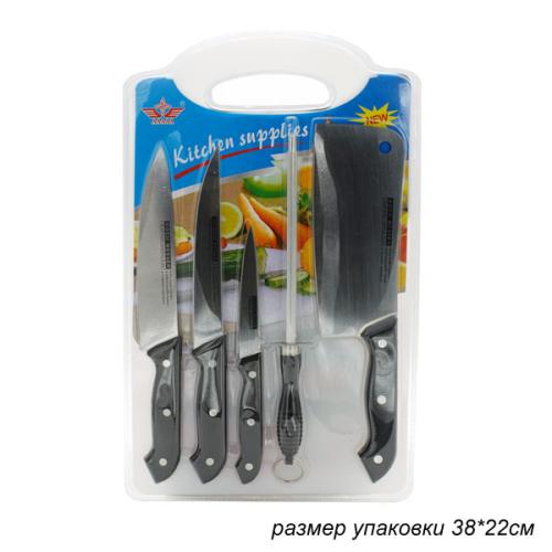 Ножи 5 предметов с ножеточкой и разделочной доской / 5811 /уп 48/