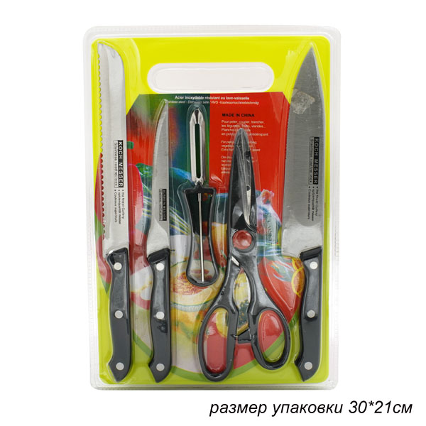 Ножи 5 предметов с овощечисткой и разделочной доской / 6646 /уп 72/