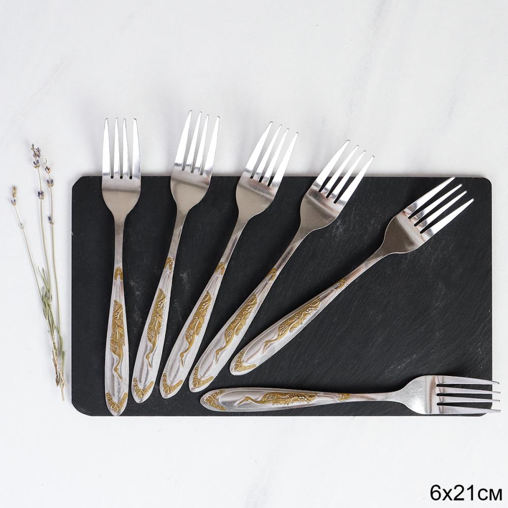 Вилка столовая 6 штук Золото Феникс / MJT7-1 /уп 100/