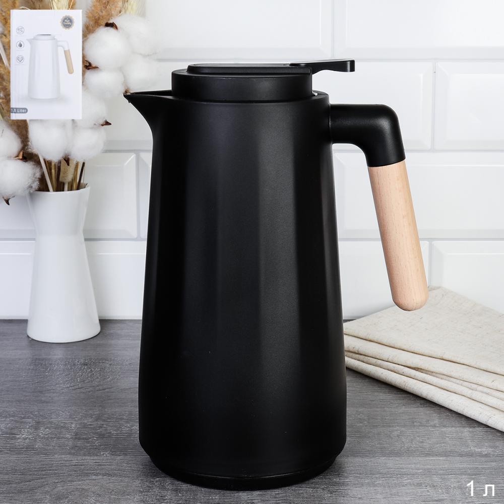 Термос кувшин 1 л с деревянной ручкой Грани / KB-912 /уп 20/ Черный