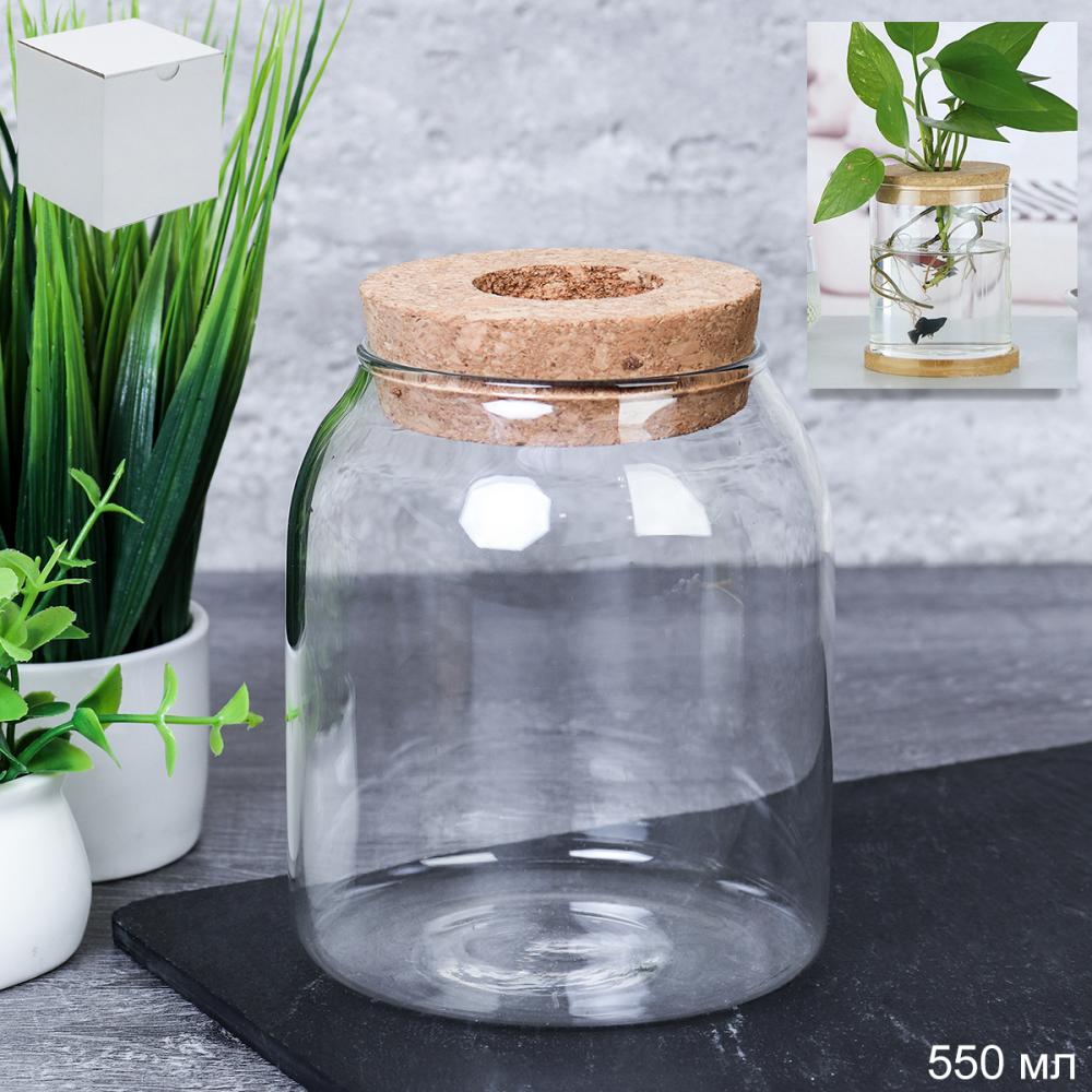 Ваза кашпо для цветов 550 мл бамбуковая крышка / HY-4022 /уп 120/