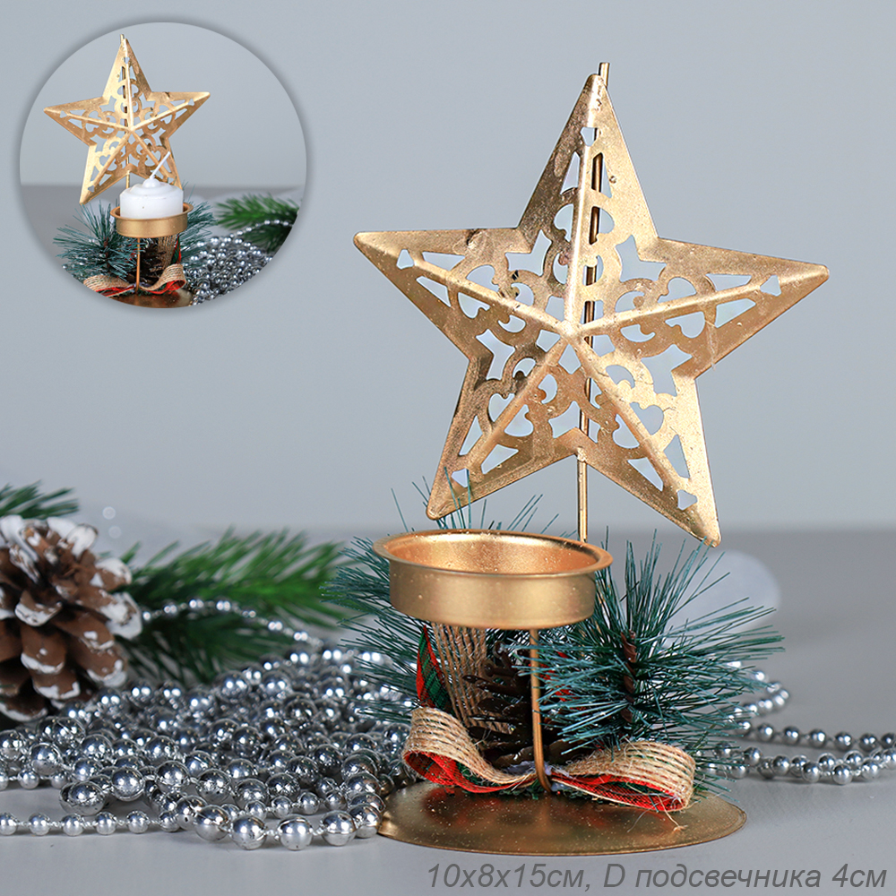 Подсвечник новогодний Звезда 15 см / SF2023-133 /уп 200/Акция
